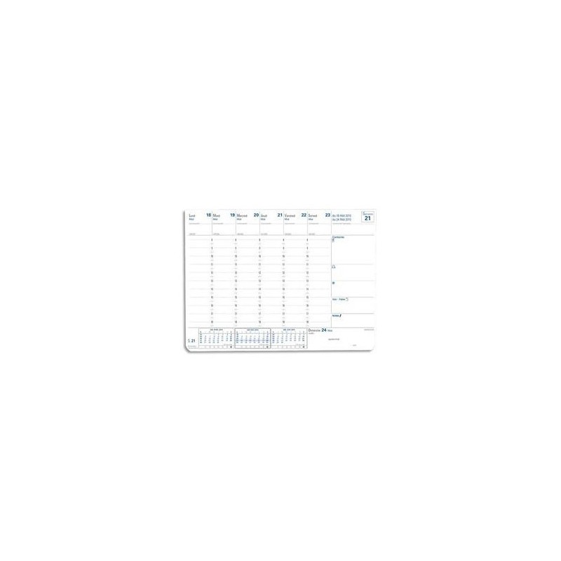 Semainier de bureau sur socle. Les feuilles se détachent et peuvent être stockées dans le socle. Socle : format 22 x 21 cm. Feuilles : format 19,6 x 14,5 cm. Blockhebdo.