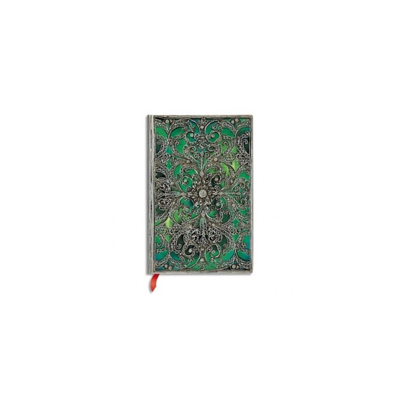 PAPERBLANKS Carnet Filigrane Argenté Esmeralda Mini 9,5 x 14 cm 208 pages unies, fermeture par élastique