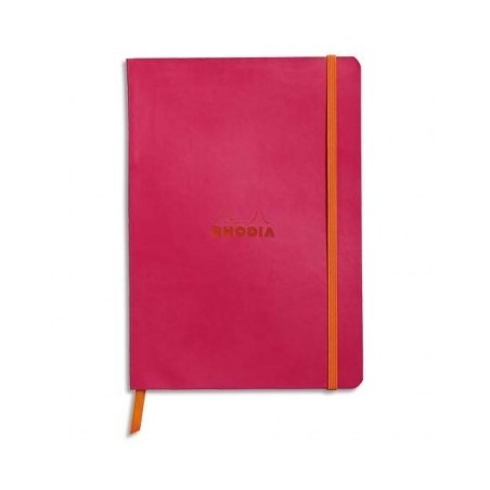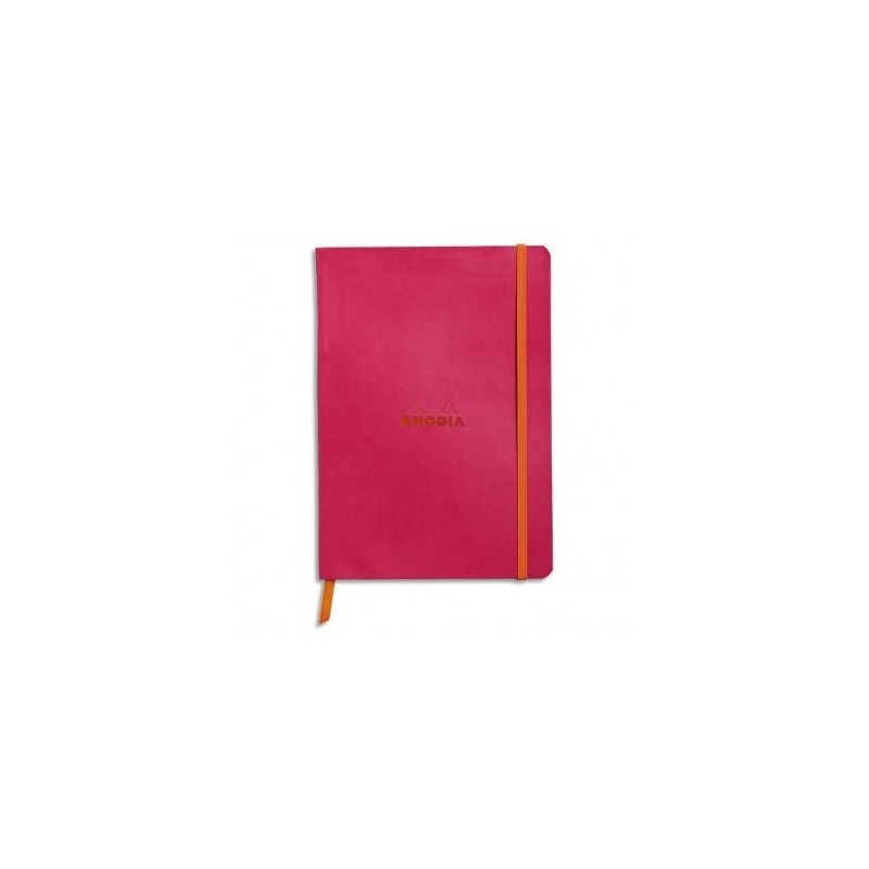 RHODIA Carnet Rhodiarama 14,8 x 21 cm 160 pages lignées. Couverture simili-cuir framboise Fermeture élastique