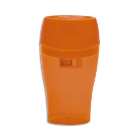 Taille-crayon 1 usage avec grand réservoir et clapet de fermeture. Coloris assortis : violet, vert, rouge. Ellipse.