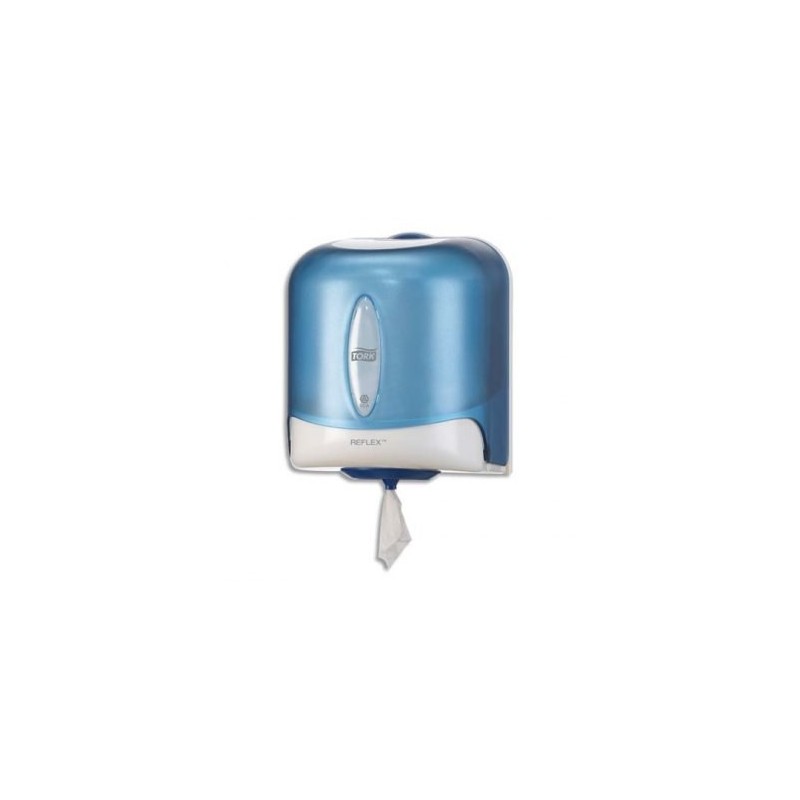 TORK Distributeur Maxi Reflex à dévidage central feuille à feuille 25 x 30 x 25 cm transparent fumé bleu