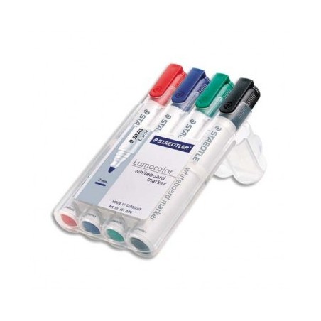 STAEDTLER Pochette de 4 marqueurs effaçables à sec pointe ogive encre alcool 4 couleurs assorties 351