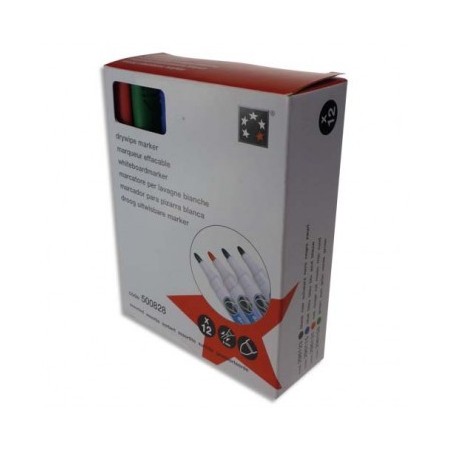 5 ETOILES Boîte de 12 marqueurs effaçables à sec pour tableaux blancs pointe ogive assortis