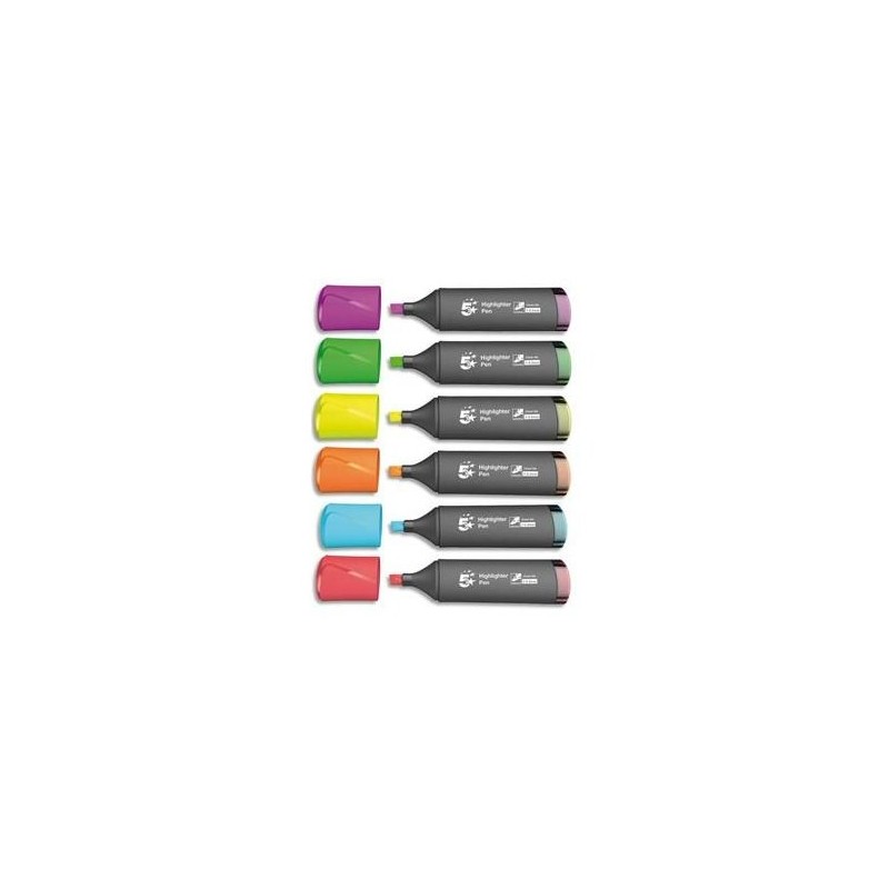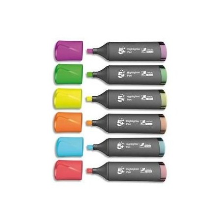 5 ETOILES Pochette de 6 surligneurs pointe biseautée coloris assortis