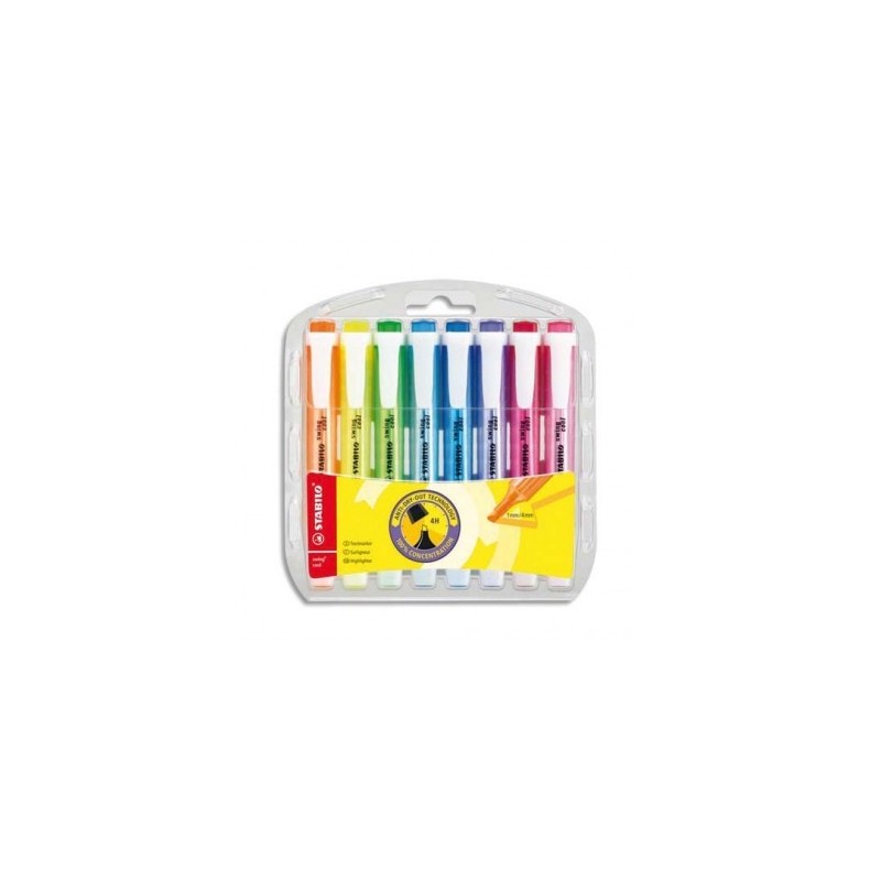 STABILO Pochette de 8 surligneurs de poche pointe biseautée assortis SWING COOL