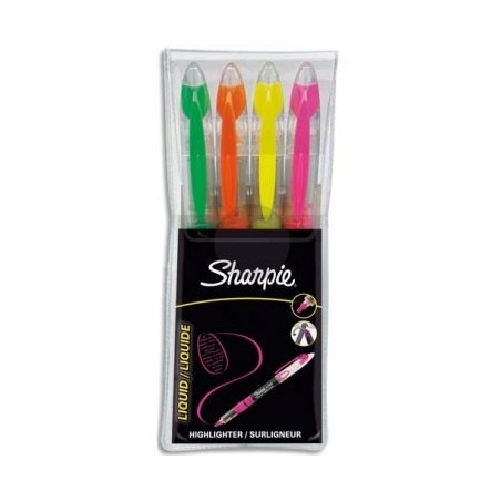 SHARPIE Pochette 4 surligneurs Liquid Accent, pointe biseautée, assortis : rose, jaune, orange et vert